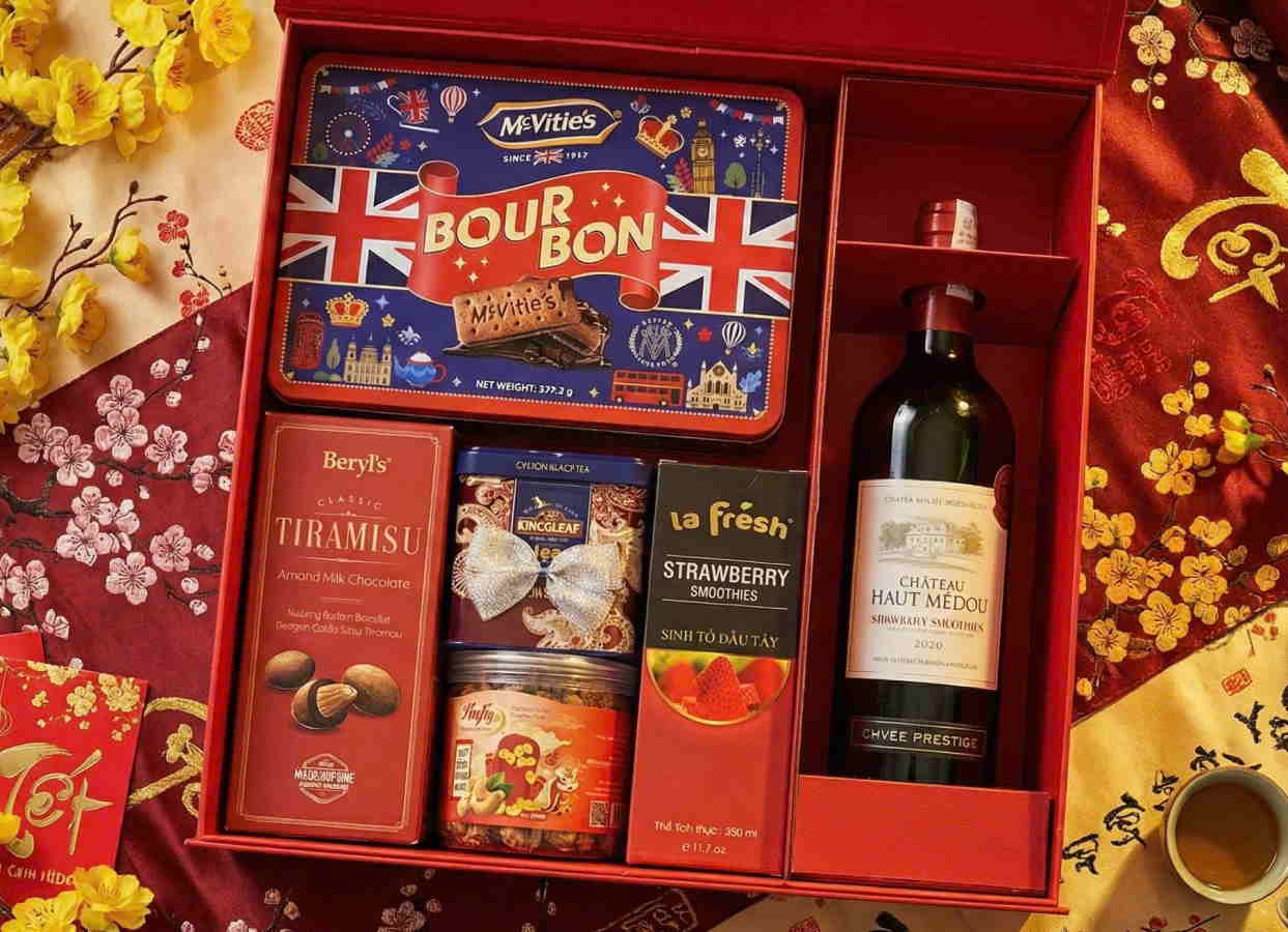 Với sự kết hợp hoàn mỹ giữa rượu vang Pháp Chateau Haut Medou cùng các loại bánh kẹo, trà, cà phê và hạt dinh dưỡng cao cấp, Cát Tường 339 không chỉ là món quà biếu, mà còn là lời chúc năm mới an khang, thịnh vượng được gửi gắm trọn vẹn.